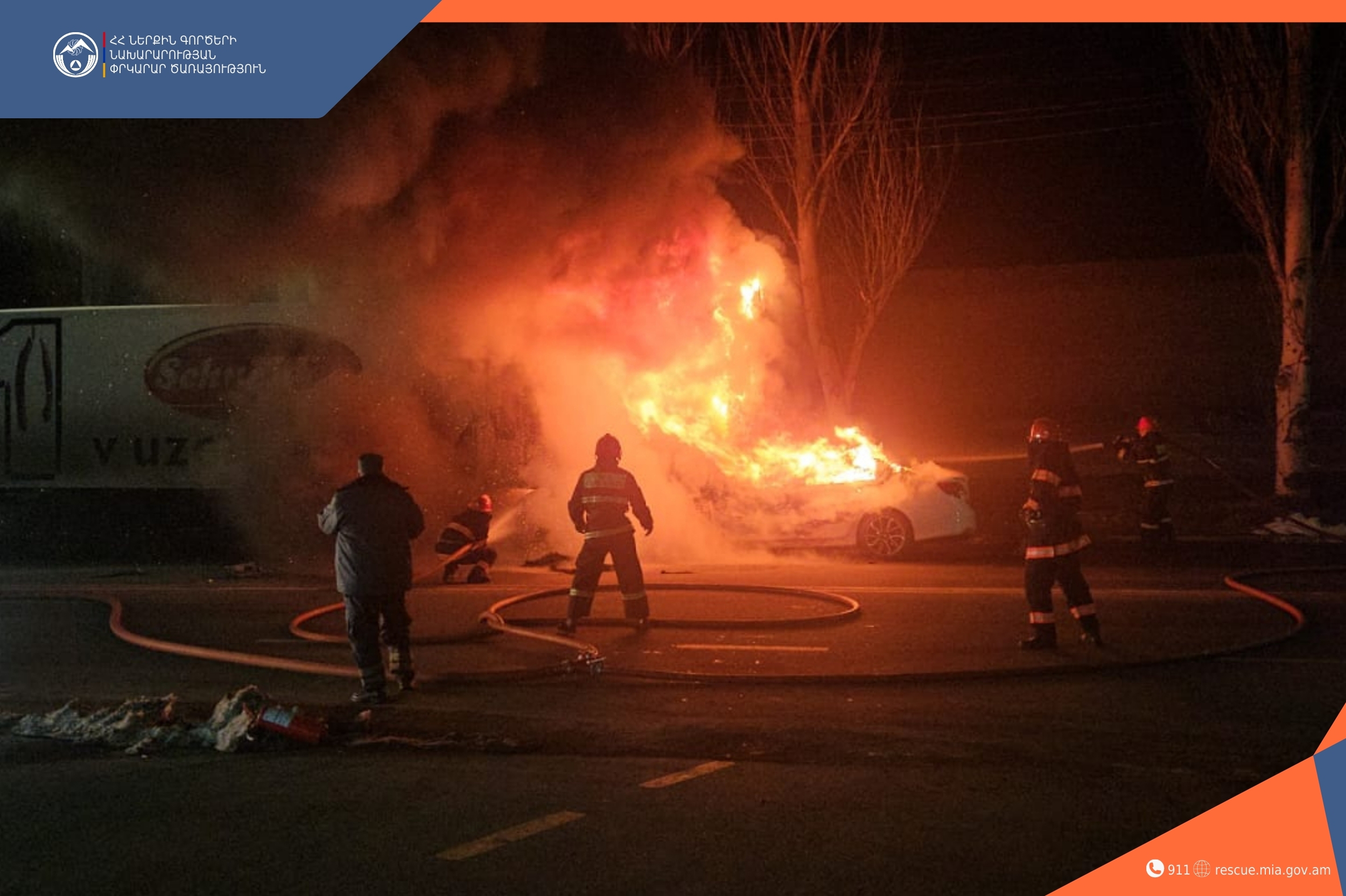 Մարտի 3-ին, ժամը 21:17-ին Լոռու մարզային ճգնաժամային կառավարման կենտրոն ահազանգ է ստացվել, որ Վանաձոր քաղաքի Կարեն Դեմիրճյան փողոցում՝ բենզալցակայանի մոտակայքում տեղի է ունեցել ՃՏՊ՝ հրդեհի բռնկմամբ։